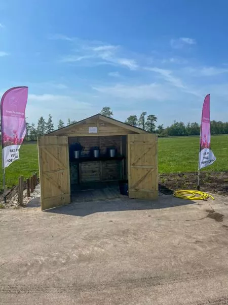 Voor Paus Pioenrozen uit Langeveen mocht ik in de nieuwe huisstijl ook bijpassende beachvlaggen realiseren. Deze staan naast het verkoophuisje. Leuk weetje! Je kunt ook terecht voor pioenrozen bij Zussen & Frutsels in Westerhaar.